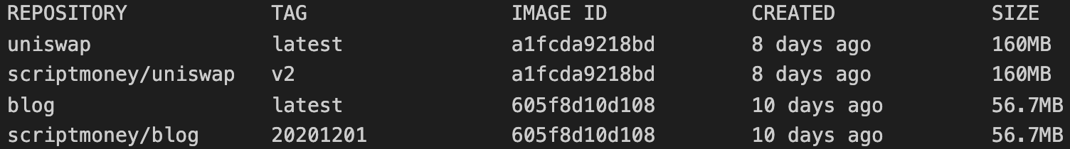 然后根据之前的教程 Akash DeCloud 部署 Uniswap ,根据更新的日期来打 tag,并把镜像 push 到 dockerhub。